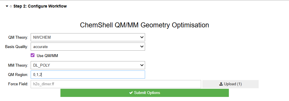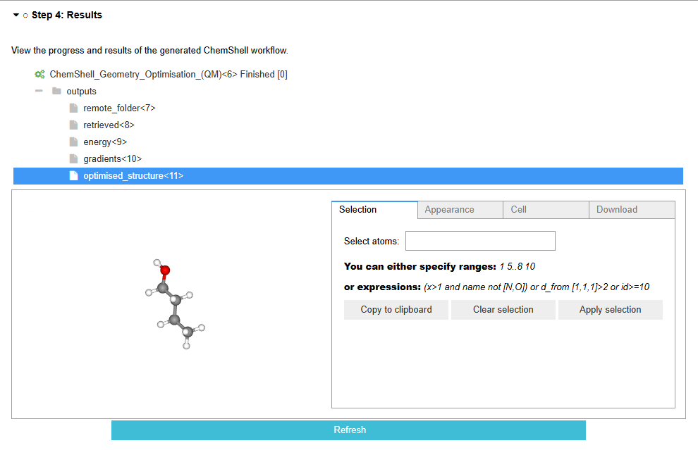 The example AiiDAlab plugin code provided within this repository contains an example for how to create a UI for a simplified geometry optimisation workflow utilising the ChemShell multi-scale chemical modelling software package, it will provide a basis for the following guides. A more complete and complex expansion on this example, specifically for ChemShell can be found at aiidalab-chemshell.