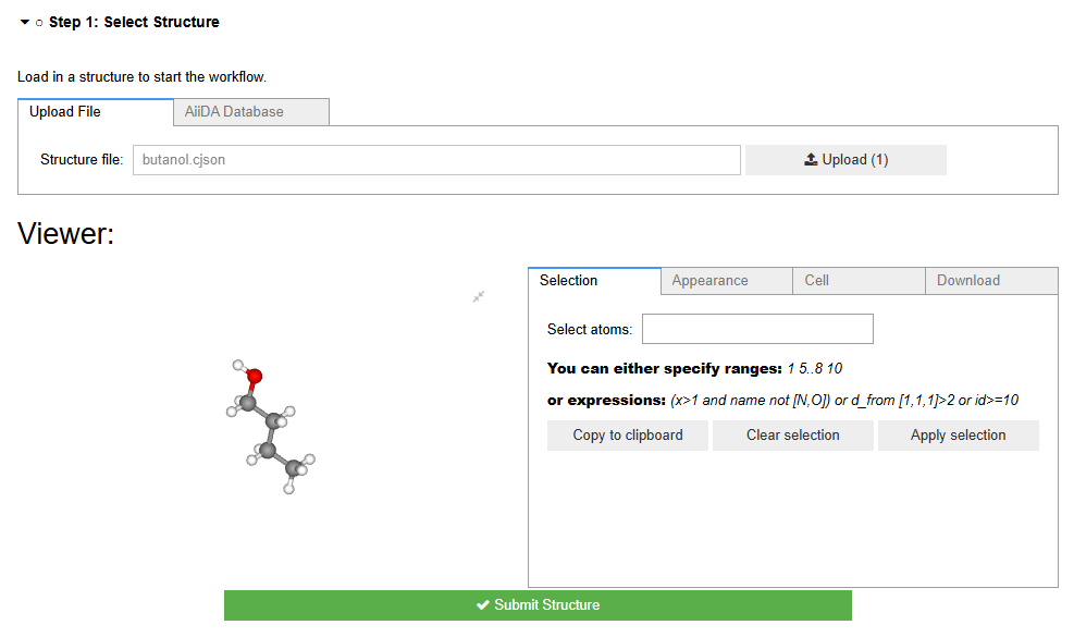 Since this is a UI interface which will be heavily based on the specific software workflow being carried out, the following guide may not be appropriate for all design cases. However, it presents a good starting point and a good general structure for computation materials modelling workflows.